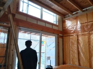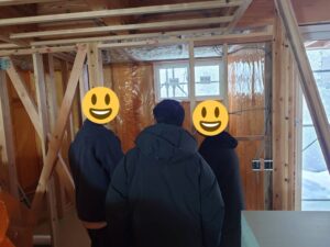 先日、断熱施工が終わり、 お施主Y様に内覧をしていただきました😄